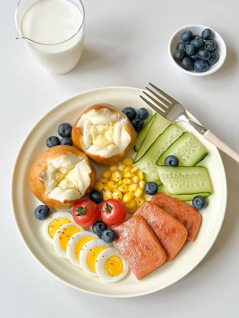 早餐要兼顾唤醒代谢和持久供能,推荐“全谷物+优质蛋白+少量蔬果”的组合,举例来说就是1片全麦面包+1个水煮蛋+1杯无糖豆浆+半根黄瓜。