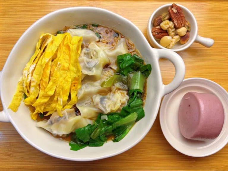 ✅9.紫菜虾滑馄饨+坚果+小馒头