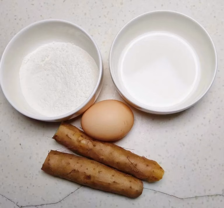 1.食材准备:100克山药、30克面粉、50克牛奶、一个鸡蛋