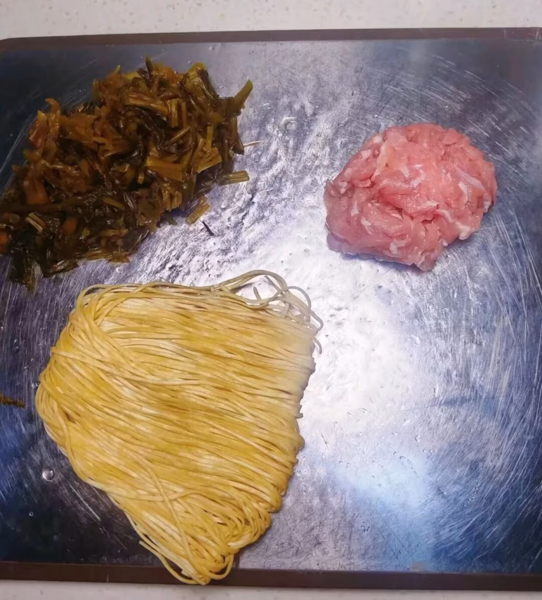 1.食材准备:肉丝、雪菜、面