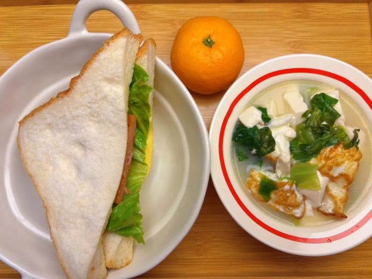 ✅4.三明治+荷包蛋豆腐汤+桔子