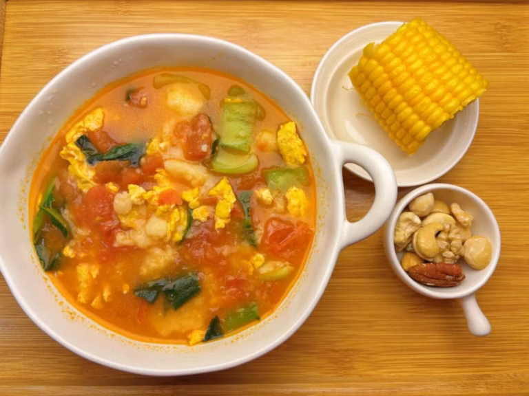 ✅5.番茄山药面疙瘩+清蒸玉米+坚果