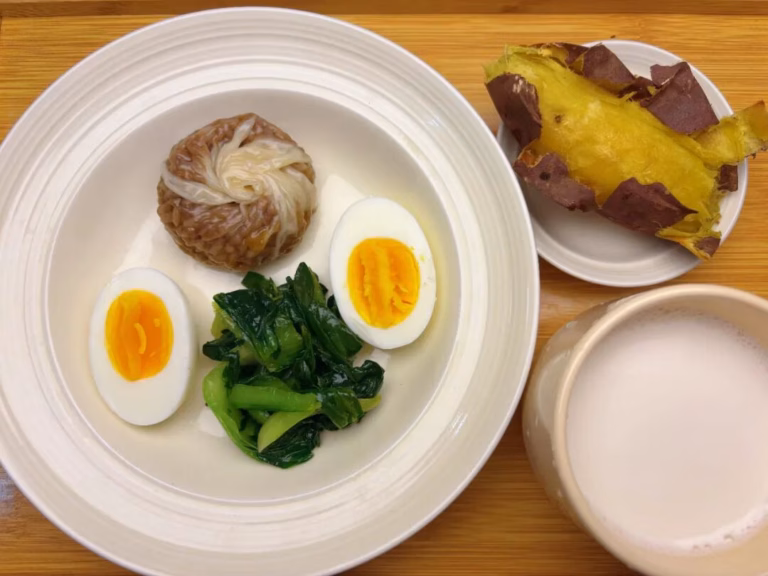 ✅6.烧麦+白煮蛋+烤红薯+炒青菜+牛奶