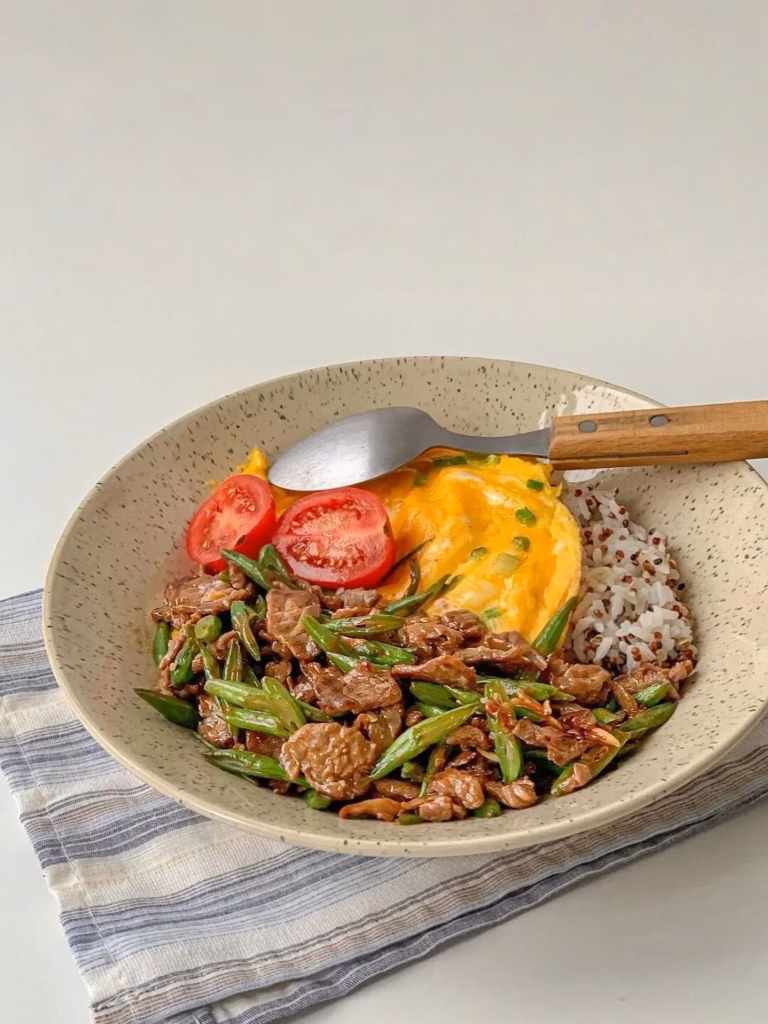 用牛肉、四季豆和鸡蛋做的减脂餐,看着就有食欲~