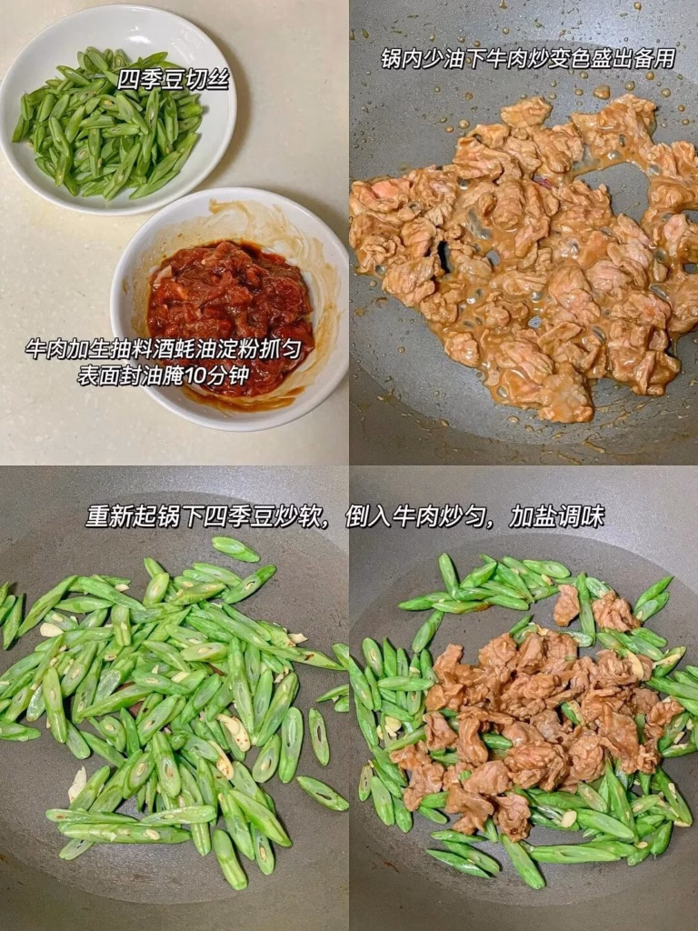 四季豆炒牛肉做法: